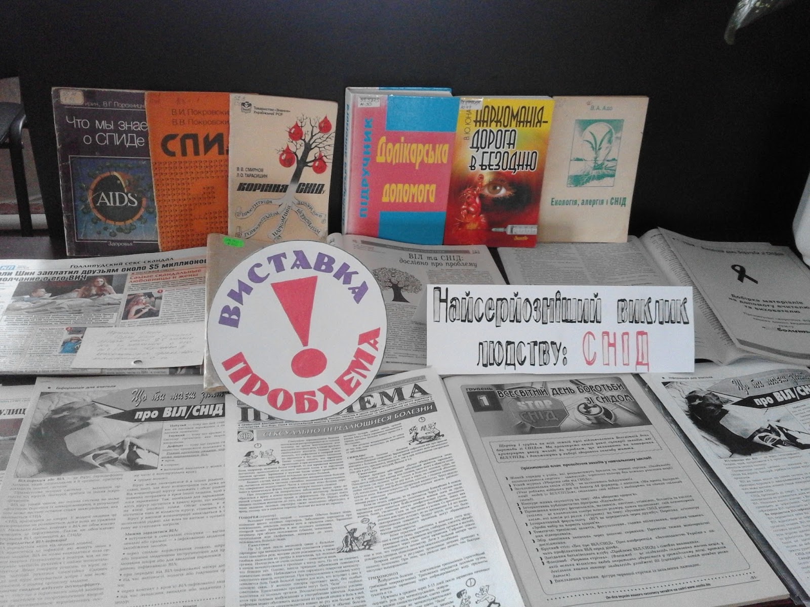Користувачі бібліотеки переглянули книжкову виставку-проблему «Найсерйозніший виклик людству:СНІД». Для учнівської молоді проведено захід, аукціон думок «СНІД не для мене. Це вибір не мій» Захід пройшов у формі діалогу. Учні ділилися своїми знаннями та думками, відповідали на запитання ведучої О. Мартус.
