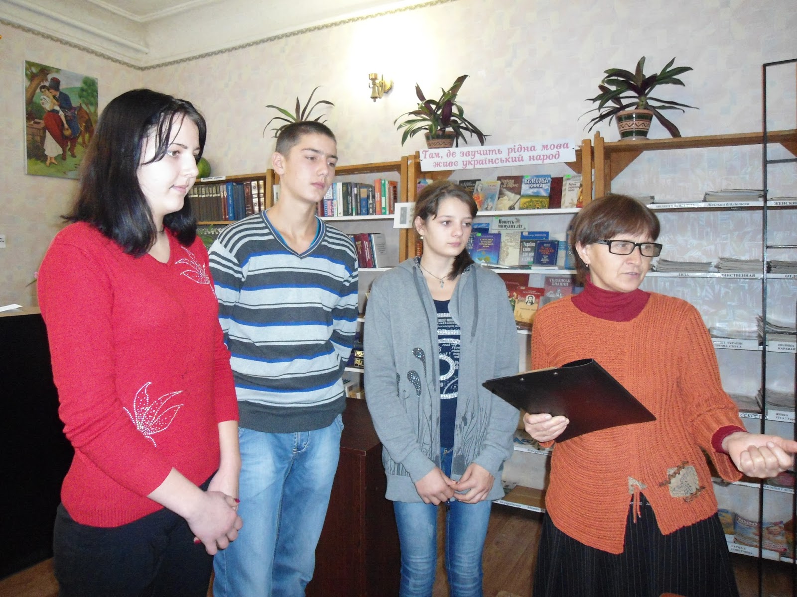 Такими словами розпочали тематичний вечір «Ти, рідна мово – скарб від бога, жива в народу на устах» для користувачів бібліотеки ведучі. На заході учнівська молодь давала відповіді на вікторину «В ріднім слові цілий світ» та переглянули відео презентацію «9 листопада День писемності та мови». Діти показали непогані знання української мови, цікаво відпочили, та дізналися багато нового.