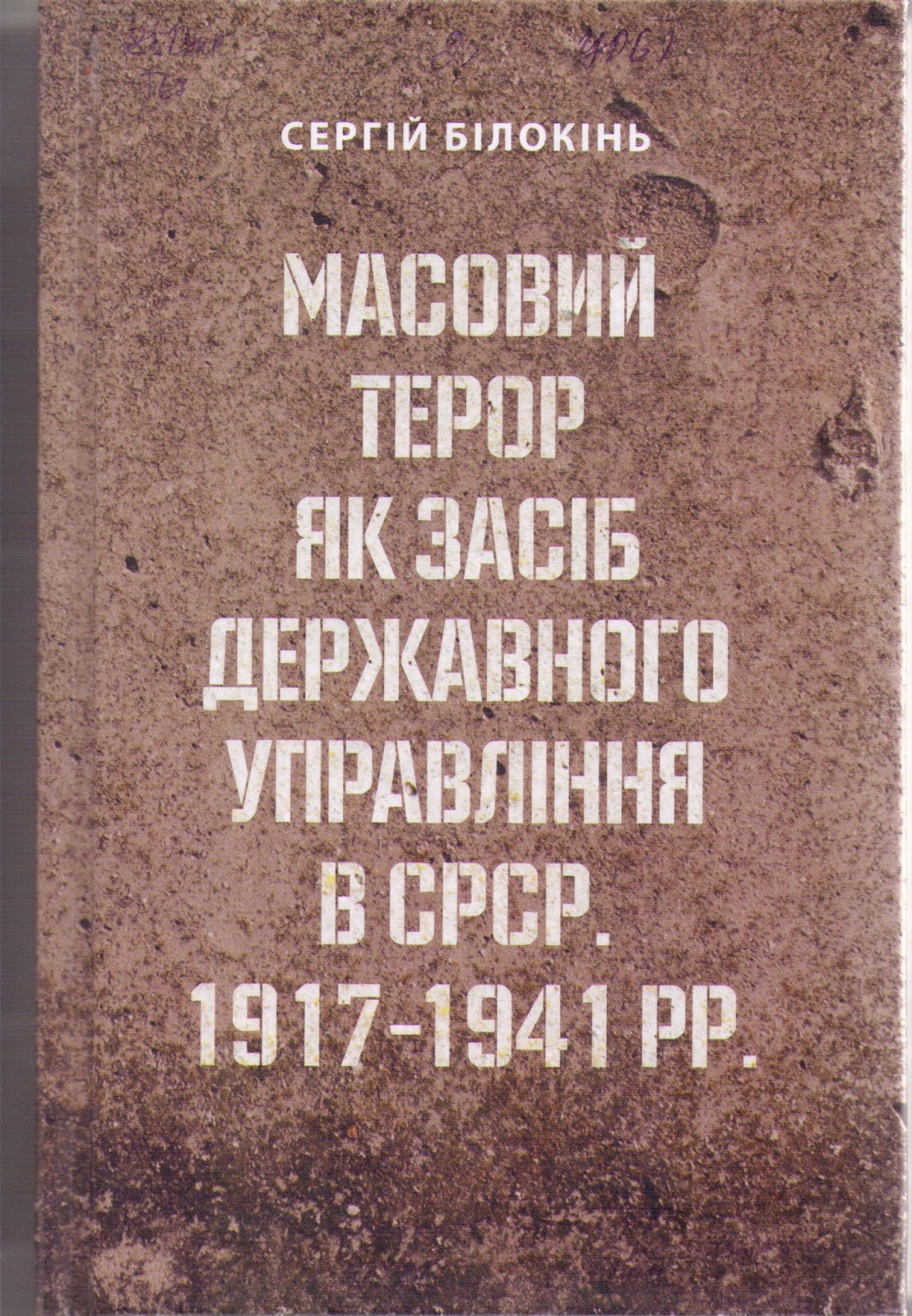 Білокінь, Сергій. Масовий терор як засіб державного управління в СРСР. 1917-1941рр.: джерелознавче дослідження [Текст]/ Сергій Білокінь.-К.: Укр. Пропілеї,2016.-694с.